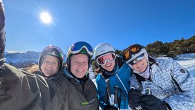 Belohnt wurden wir mit traumhaften Bedingungen: strahlender Sonnenschein ohne eine einzige Wolke am Himmel und perfekte Schneeverhältnisse sorgten den ganzen Tag über für beste Stimmung auf den Pisten. Alle Teilnehmer hatten sichtlich viel Spaß und Freude am gemeinsamen Skifahren.